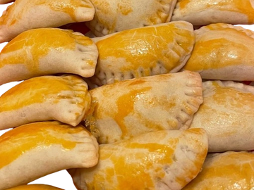 Our pie, which we call empadao, buttery dough with chicken and Catupiry filling. The pie is baked but not heated, it needs to be heated in the oven, at 300F for about 30 minutes.